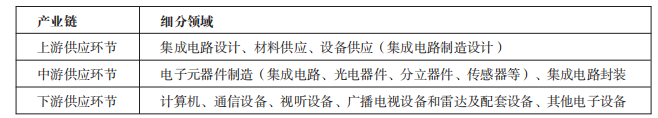 基于电子信息的构成及其相互之间的上下游联系,电子信息产业链的结构如表1所示,可划分为上游供应部分、中游制造部分以及下游应用部分 。