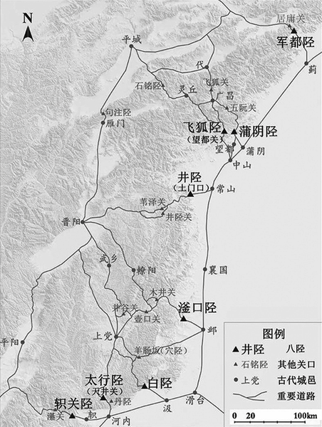 作为晋、冀、豫三省的界山,太行山就是一道天然屏障,将黄土高原与华北平原隔绝成互相独立的两部分,只能依靠山脉中断而形成的天然横谷保持联系,“太行八陉”就是其中最有名的联结太行山两侧的交通要道。《太平寰宇记》引东晋郭缘生《述征记》称:“太行山首始于河内,自河内北至幽州,凡有八陉:第一曰轵关陉,今属河南府济源县,在县理(治所)西十一里;第二太行陉,第三白陉,此两陉今在河内;第四滏口陉,对邺西;第五井陉;第六飞狐陉,一名望都关;第七蒲阴陉,此三陉在中山;第八军都陉,在幽州。太行陉,阔三步,长四十里。 ” 可见,早在东晋时期,人们就已认识到[1 ]太行八陉的战略意义与交通价值。千年以后的今天,随着高速公路、铁路、飞机等新型交通方式的问世,昔日的战略要地、交通要道早已不复往日繁华,变成了书写在北方大地上的历史记忆。