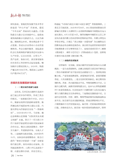 尽管取得一定进展,区域古镇共生发展仍面临五大关键挑战:一是生态资源制约。古镇文旅投资力度总体不够充足(部分古镇曾因矿业开发面临生态修复压力),经济抗风险能力弱,产业发展选择受限,游客体验打折扣,游客消费链条短,人均贡献值低。二是文化协同机制缺位。缺乏跨省协调机构,各省、各古镇间联动不足,导致资源整合不足。以陈炉古镇为例,虽拥有独特陶瓷文化,但未与山西陶瓷重镇怀仁形成有效联动;托克托县河口古镇的渡口文化也未能与碛口古镇的漕运文化形成呼应。三是基础设施联通不足。交通可达性较差;住宿、餐饮、购物等旅游接待设施体量和品质不足;缺乏现代化商业服务配套。四是品牌影响力不足。古镇资源碎片化开发现象突出,缺乏统一的区域品牌规划和打造,未能形成合力,缺乏统一标识系统和国际级IP。陕晋