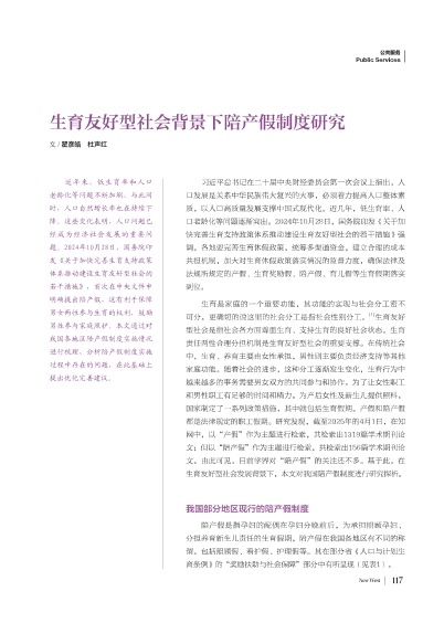 生育是家庭的一个重要功能,其功能的实现与社会分工密不可分,更确切的说这里的社会分工是指社会性别分工。 生育友好型社会是指社会各方面尊重生育、支持生育的良好社会状态。生育责任两性合理分担机制是生育友好型社会的重要支撑。在传统社会中,生育、养育主要由女性承担,男性则主要负责经济支持等其他家庭功能。随着社会的进步,这种分工逐渐发生变化,生育行为中越来越多的事务需要男女双方的共同参与和协作。为了让女性职工和男性职工有足够的时间和精力,为产后女性及新生儿提供照料,国家制定了一系列政策措施,其中就包括生育假期。产假和陪产假都是法律规定的职工假期。研究发现,截至2025年的4月1日,在知网中,以“产假”作为主题进行检索,共检索出1319篇学术期刊论文;但以“陪产假”作为主题进行检索,共检索出156篇学术期刊论文。由此可见,目前学界对“陪产假”的关注还不多。基于此,在生育友好型社会发展背景下,本文对我国陪产假制度进行研究探析。[ 1]