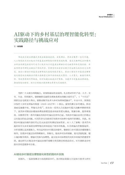 AI驱动下的乡村基层治理智能化转型: 实践路径与挑战应对