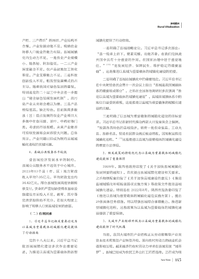 一是明确了县城战略定位。习近平总书记多次指出:“ 县一级承上启下,要素完整,功能齐备,在我们党执政兴国中具有十分重要的作用,在国家治理中居于重要地位。 ”[ 10] “ 是发展经济、保障民生、维护稳定的重要基 础”。这是推进以县城为重要载体的城镇化建设的前提。