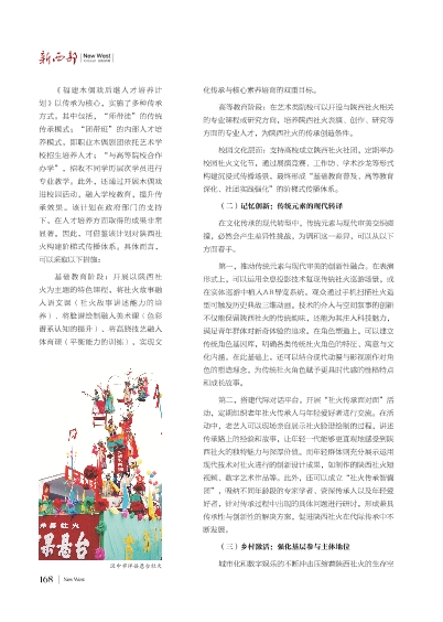 校园文化层面:支持高校成立陕西社火社团,定期举办校园社火文化节,通过展演竞赛、工作坊、学术沙龙等形式构建沉浸式传播场景,最终形成“基础教育普及、高等教育深化、社团实践强化”的阶梯式传播体系。