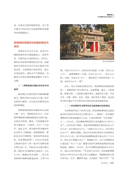 陕西是历史文化大省,省内历代碑刻资源具有存藏数量庞大、种类齐全、名碑名刻占比高的特点。近年来,陕西以西安碑林博物馆为代表,在碑刻类文物的活化利用方面已取得丰硕的成果,文旅影响力持续领先,数字化进程加快,展陈水平不断提高,为陕西文化事业高质量发展提供了有力支撑。