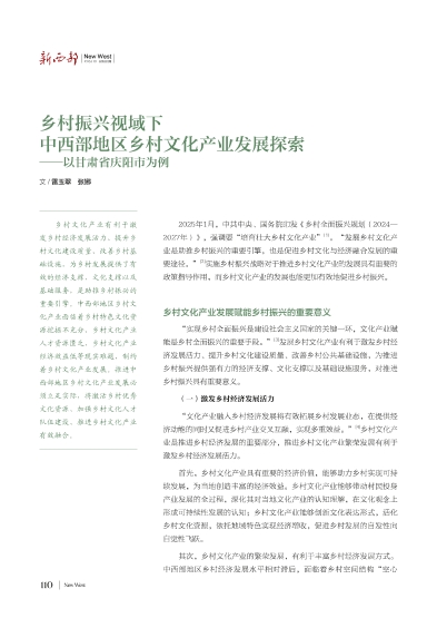 乡村振兴视域下 中西部地区乡村文化产业发展探索— —以甘肃省庆阳市为例